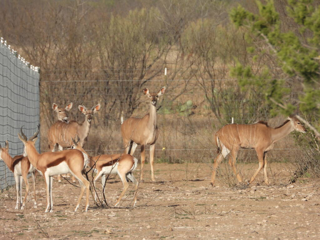 Females: Smaller, standing around 35 inches at the shoulder and weighing 121–150 lbs. Their coats are reddish-brown with more prominent white stripes and spots, but they lack horns.
